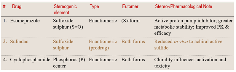 Chirality is not the exclusive domain of carbon. Heteroatoms such as sulfur, phosphorus, and nitrogen can generate stable, isolable enantiomers with strikingly different pharmacological outcomes. These examples reveal how heteroatom-based chirality broadens stereochemical design in drug molecules.