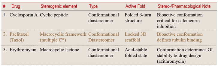 Macrocycles and cyclic peptides can adopt multiple dynamic conformations, yet only one often aligns perfectly with the biological target. When internal H-bonding or steric pressure locks a fold, a stable conformational diastereomer emerges.