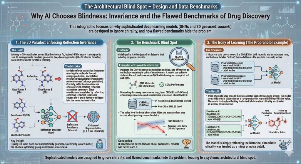 If your benchmarks never demand chiral awareness, your models will never learn it.