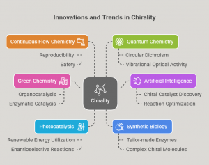 As the study of chirality enters its next phase, it remains at the forefront of scientific exploration, bridging disciplines such as chemistry, biology, pharmacology, and material science. The journey from its foundational discoveries to the transformative breakthroughs in asymmetric synthesis and pharmaceutical applications has established chirality as a fundamental concept in understanding and manipulating molecular asymmetry. This final chapter provides a holistic summary of chirality’s journey, its underpinnings, and where it is headed in the … Continue reading Part 5. The Future of Chirality: Challenges and Innovations