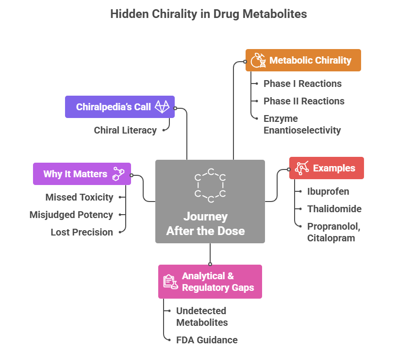 If chemistry teaches us anything, it’s that symmetry hides complexity. In pharmacology, the mirror image of a molecule can mean the mirror image of an outcome. Chiralpedia’s mission is to illuminate these hidden corners — where regulatory documents, AI models, or metabolic pathways lose sight of stereochemistry. The overlooked chirality of metabolites is one such corner, rich with both scientific challenge and clinical consequence.